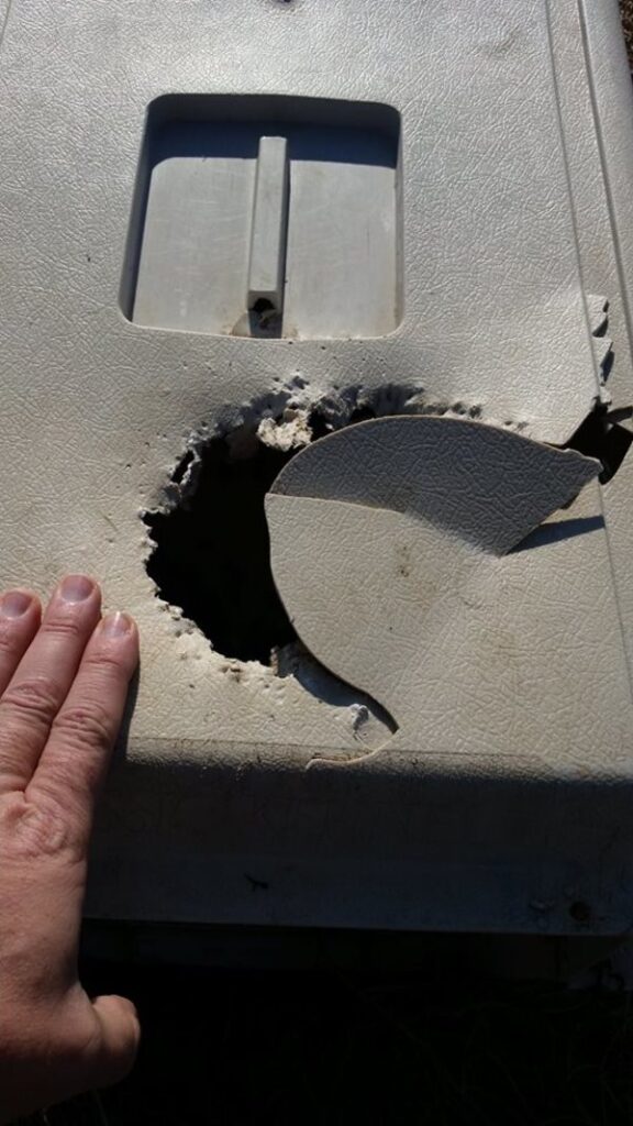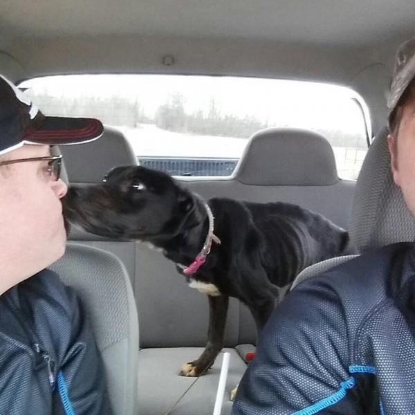 Bret Winingar and his son, Zach, were out on their motorcycles when something caught their eye: an old, weathered dog carrier sitting alone off the shoulder. Curiosity and concern made them stop. Inside, they found a severely malnourished dog who had clearly been there far too long.